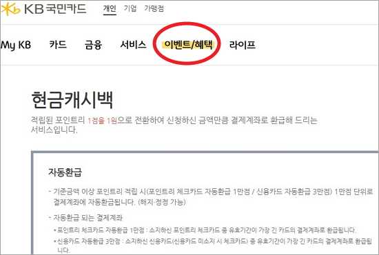 KB국민카드 홈페이지에서 KB포인트리 자동환급(현금 캐시백) 신청 및 해지 설정이 가능 했습니다.